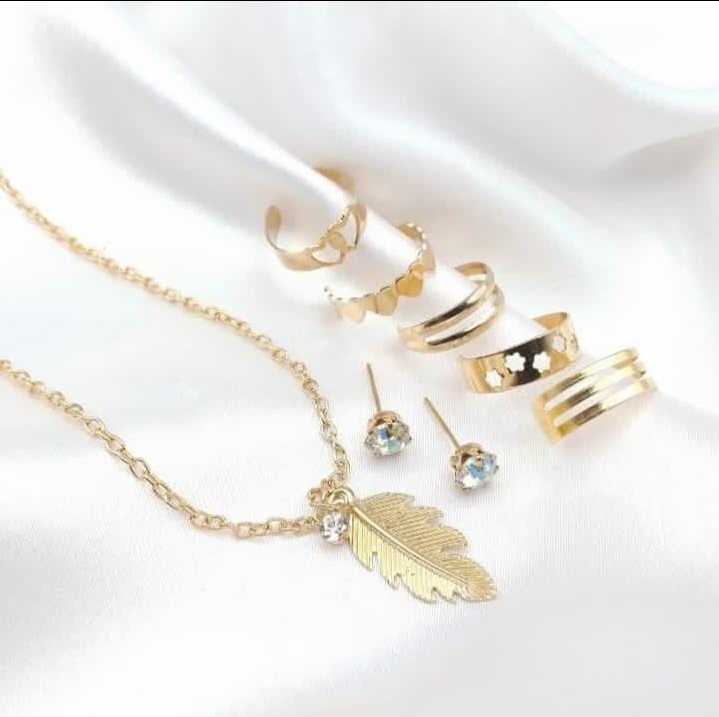 7 Jewelry Set- 5 Rings with adjustable sizes – Necklace / Pendant & Stud Earrings
