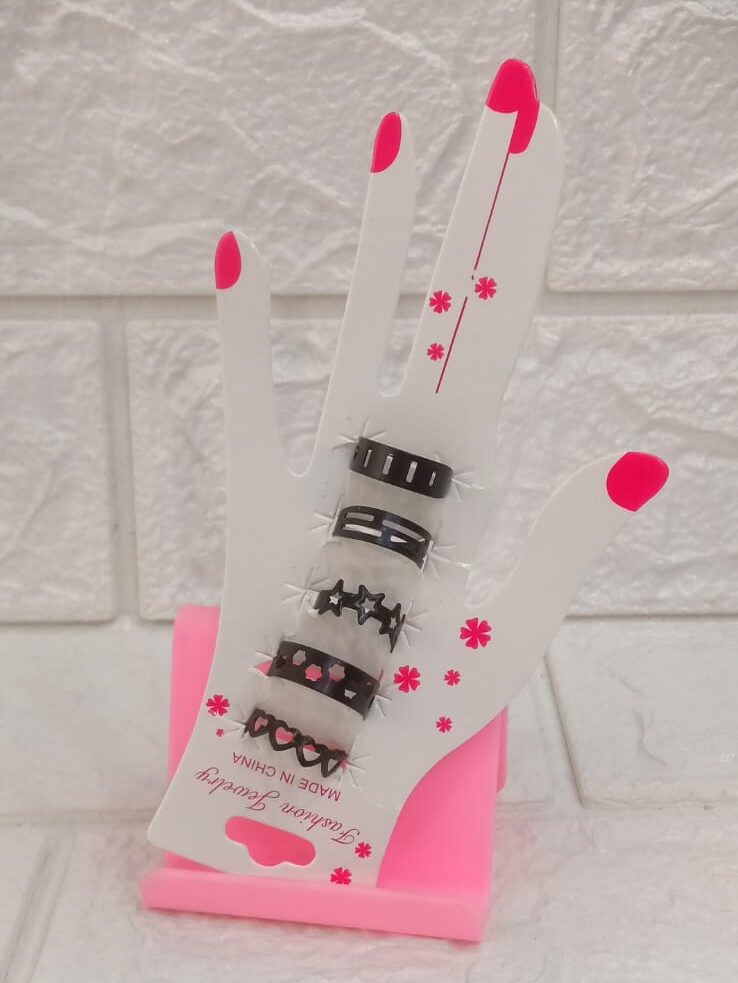 Set of 5 – Black Stainless Adjustable Rings For Girls